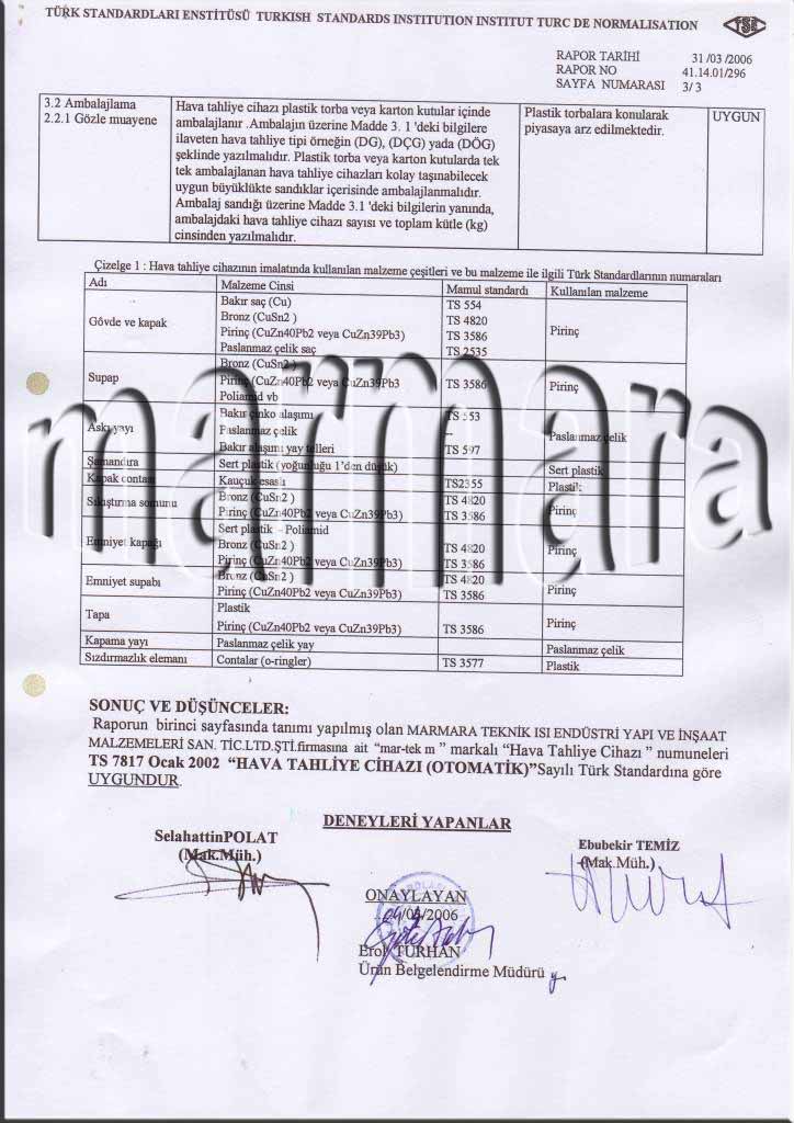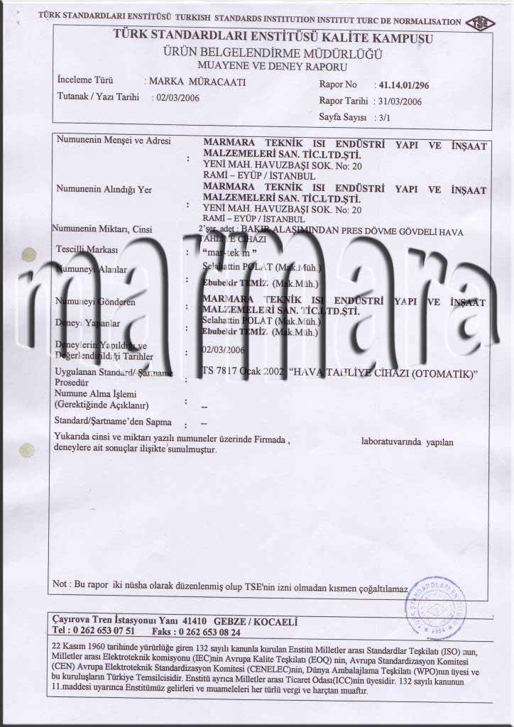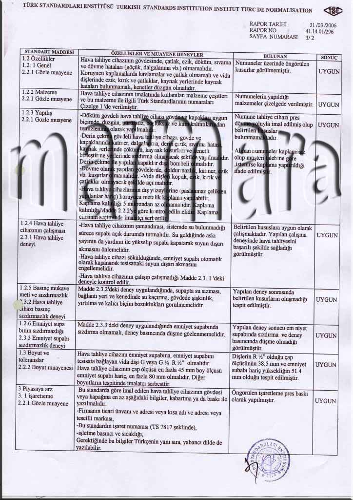 TSE MUAYENE VE DENEY RAPORU -